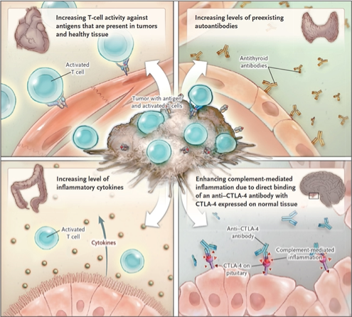 (1) Postow MA, Sidlow R, Hellmann M. Immune-related adverse events associated with immune checkpoint blockade. New Eng J Med, 2018; 378:158-68.